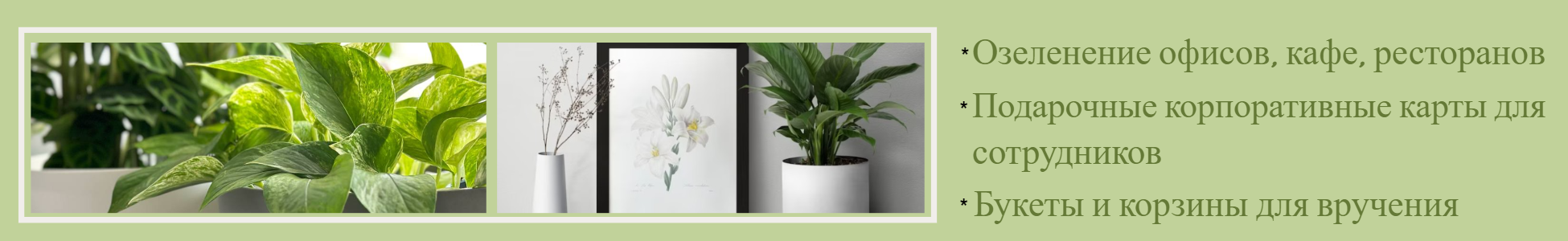 Наши услуги довольно обширны, флористы компании наработали огромный опыт по работе с корпоративными клиентами в разных сферах, от озеленения офисов, кафе и ресторанов, до индивидуальных проектов озеленения важных встреч и мероприятий мирового уровня.